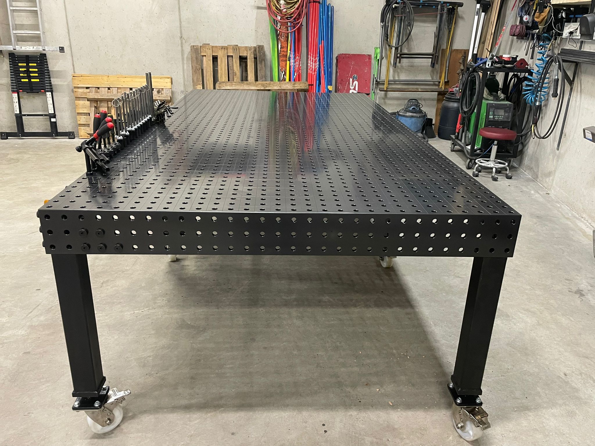 Superieure stabiliteit: het tafelblad van verdikte staalplaat met een nitrerende coating om lasslakken te voorkomen, kan een belasting van 500–1000 kg dragen, waardoor er geen trillingen of verschuivingen optreden tijdens laswerkzaamheden en de lasprecisie effectief wordt verbeterd.