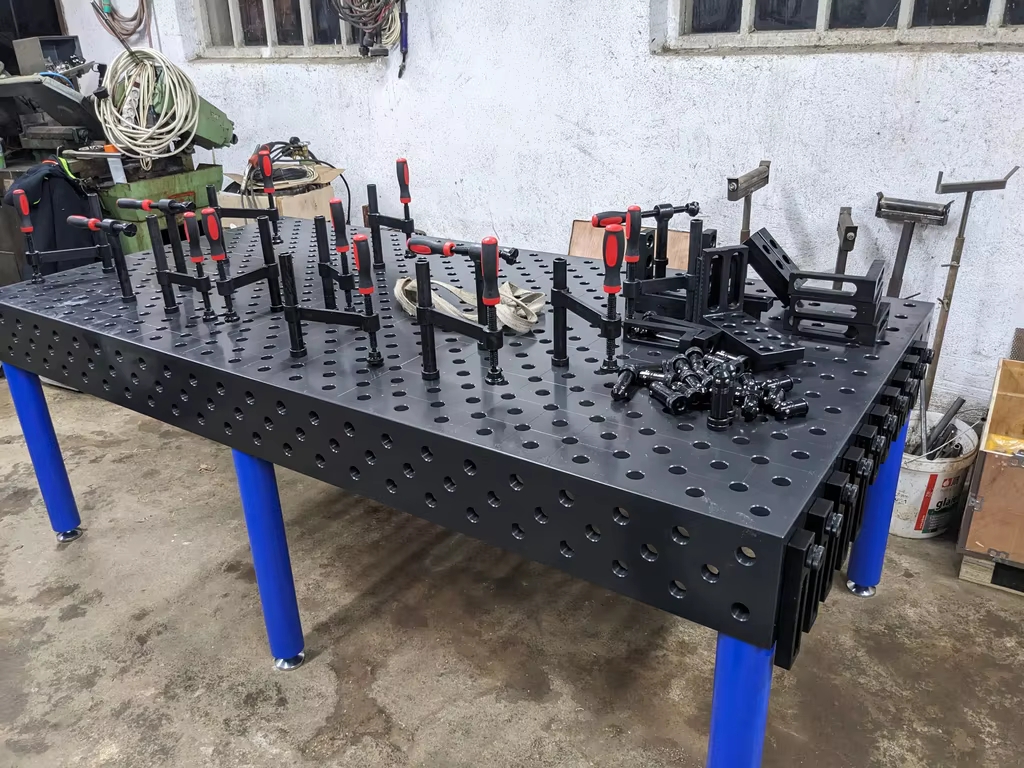 Multifunctioneel aanpassingsvermogen: het tafelblad heeft voorgeboorde positioneringsgaten en montageposities voor de snelle bevestiging van verschillende gereedschapsarmaturen, compatibel met verschillende processen zoals handmatig booglassen, argonbooglassen en gasbeschermd lassen.