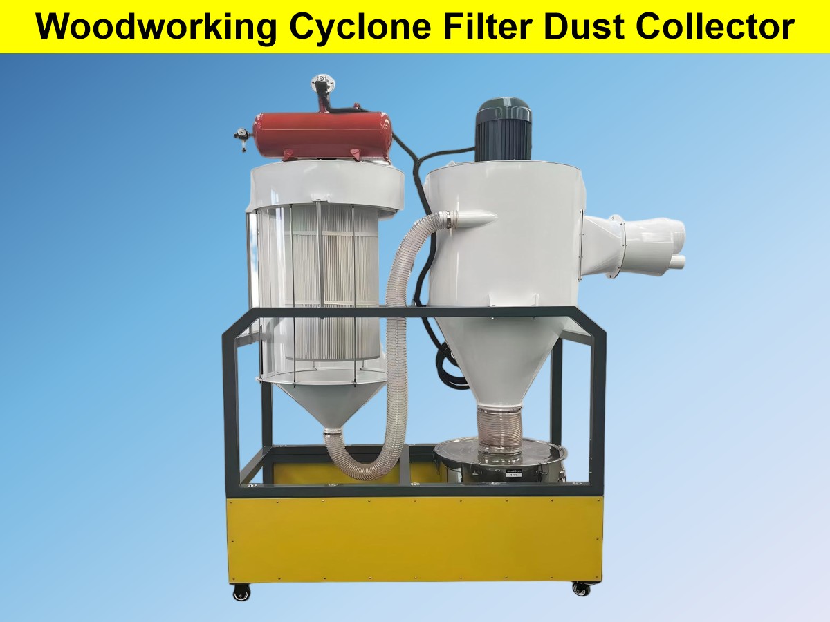 Cycloonfilter-type houtbewerkingsstofafscheiders zijn een combinatie van cycloonscheiding en filterpatroonfiltratie. Ze combineren de voordelen van cycloonstofafscheiders bij het verwerken van hooggeconcentreerd grof stof met de uiterst nauwkeurige eigenschappen van stofafscheiders met filterpatronen bij het filteren van fijn stof. Specifiek ontworpen voor de brede deeltjesgrootteverdeling van zaagsel en houtpoeder in houtbewerkingswerkplaatsen, is hun stofverwijderingsefficiëntie veel hoger dan die van apparatuur uit één stuk.